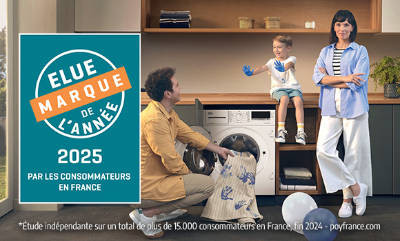 Les cuves de nos lave-linge et lavante-séchante sont composées en partie à partir de bouteilles en plastique recyclées. Avec 10% de la cuve éco-conçue, c'est jusqu'à 60 bouteilles* de 500 ml qui sont présentes dans le lave-linge.