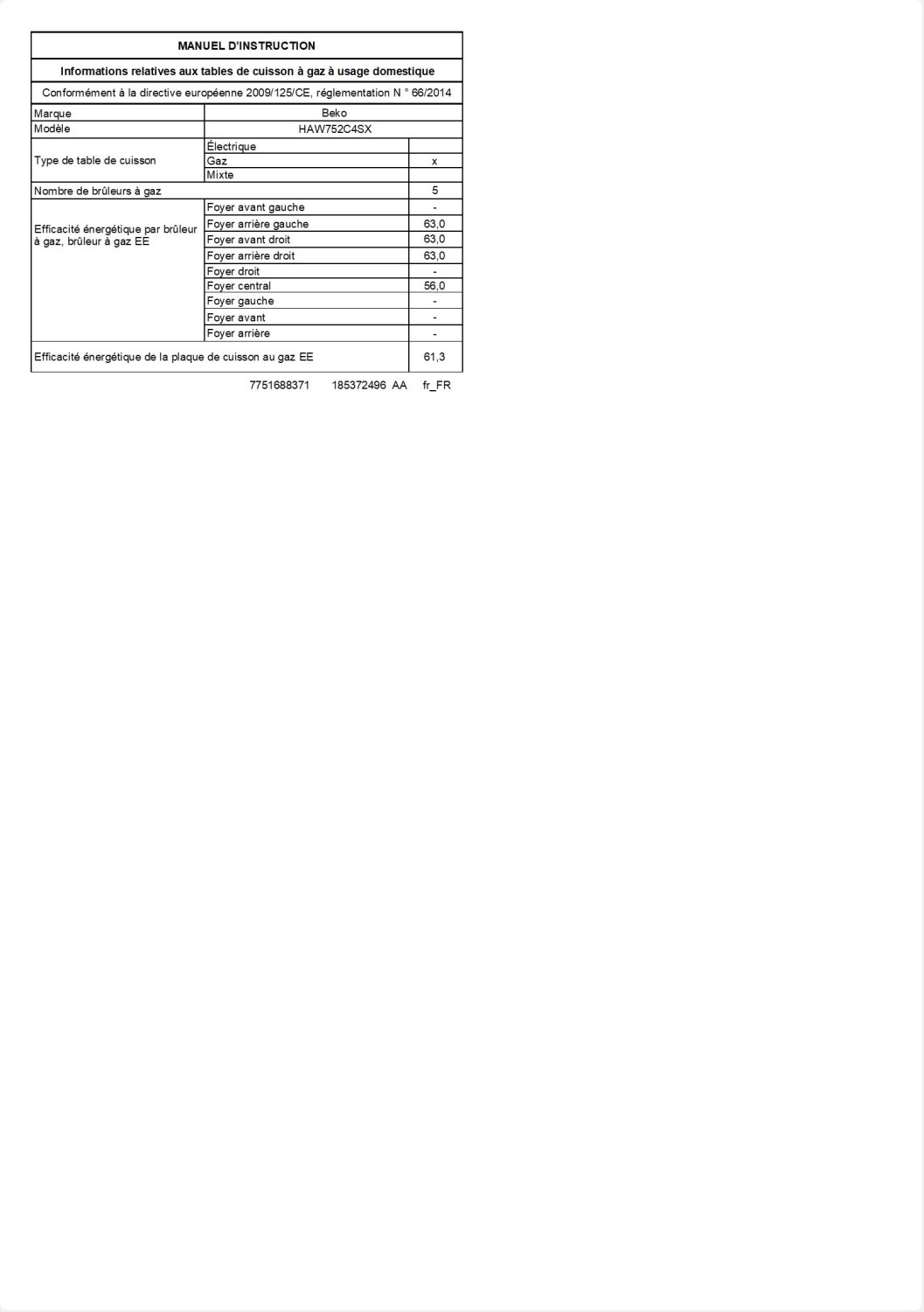 Beko s’engage à conserver les pièces détachées de cet appareil pendant 12 ans, à compter de la première date d’achat par les consommateurs.