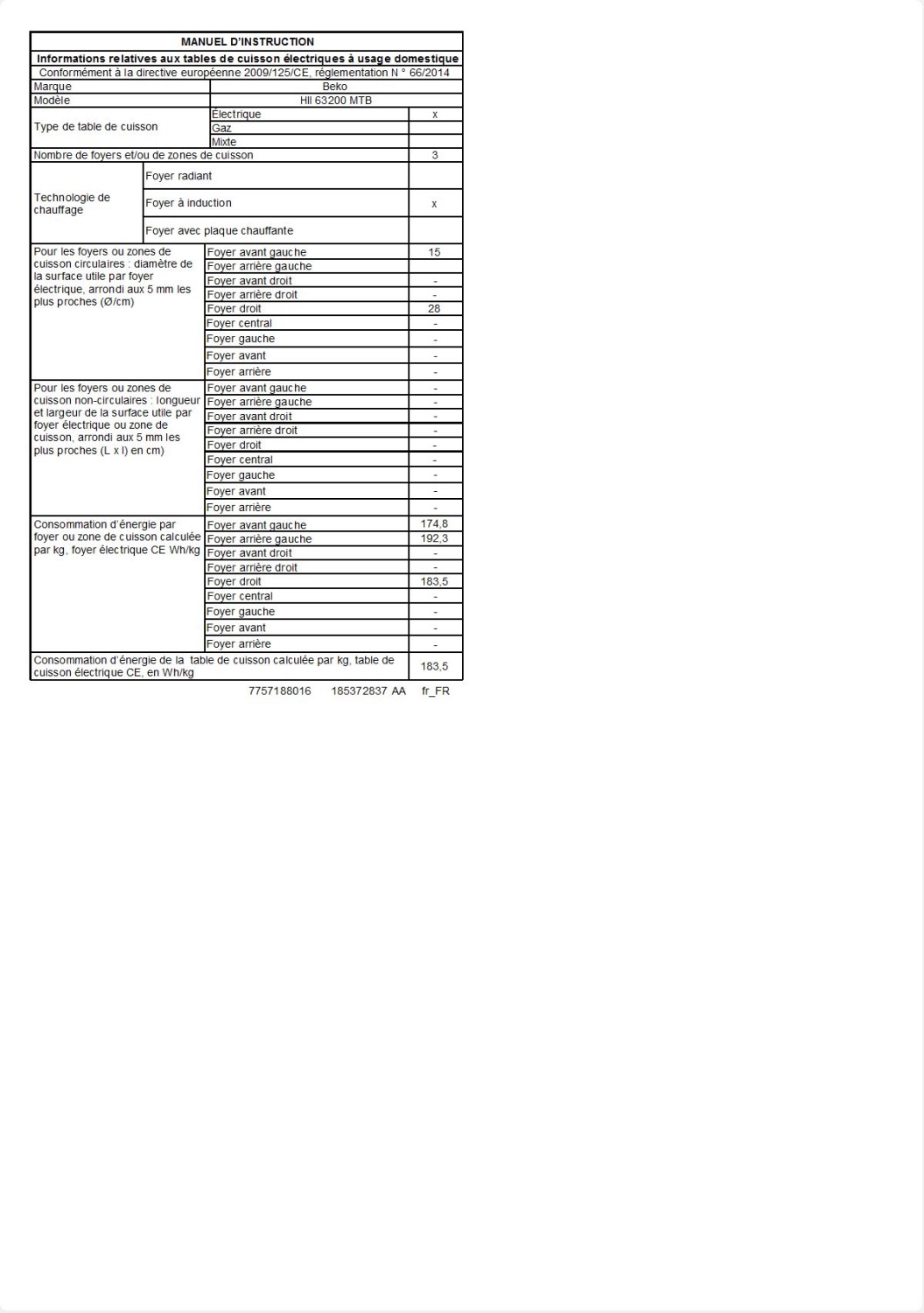 Beko s’engage à conserver les pièces détachées de cet appareil pendant 12 ans, à compter de la première date d’achat par les consommateurs.