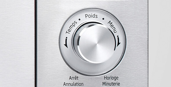 Grâce au bouton de réglage rétractable, ce micro-ondes a une surface plane et élégante et sera ainsi simple à nettoyer.