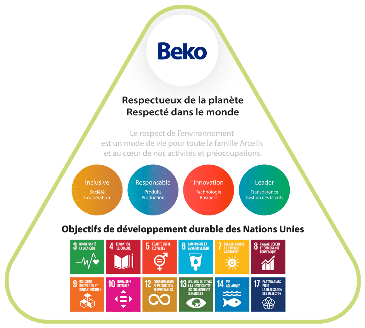 Depuis 2016, le groupe Beko a aligné sa stratégie sur les Objectifs de Développement Durable (ODD) adoptés en septembre 2015 par l’ONU dans le cadre de l’Agenda 2030.